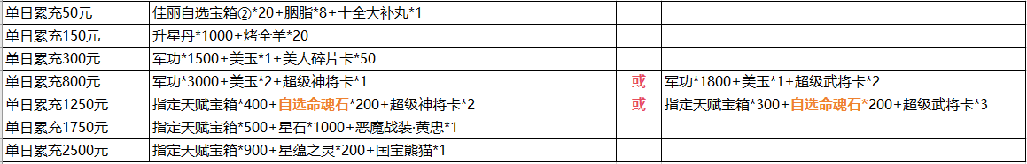 【活动规则】活动期间单日累计充值或三日累计充值达到对应条件,即可向客服申请奖励;两个板块互不冲突,可叠加