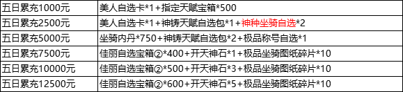②. 活动为累积奖励,即五日充值12500元可领取所有奖励,每个档位仅限申请1次