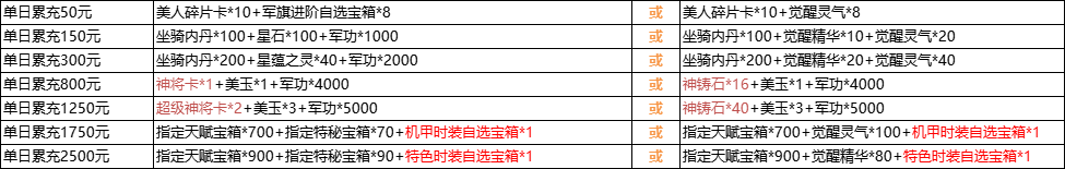 【活动规则】活动期间单日累计充值或五日累计充值达到对应条件,即可向客服申请奖励;两个板块互不冲突,可叠加