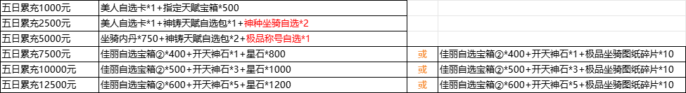 ②. 活动为累积奖励,即五日充值12500元可领取所有奖励,每个档位仅限申请1次