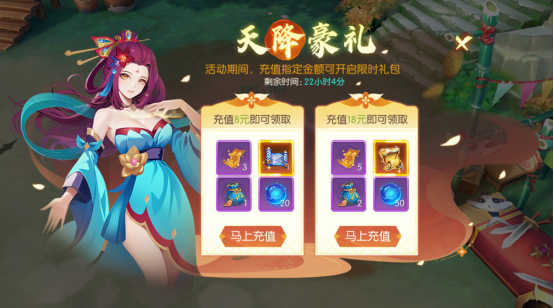 活动介绍:活动期间,充值指定金额可开启限时礼包。
