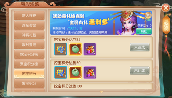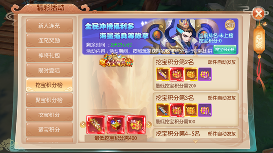 1.活动期间内玩家使用低级藏宝图和高级藏宝图可以获得挖宝积分,