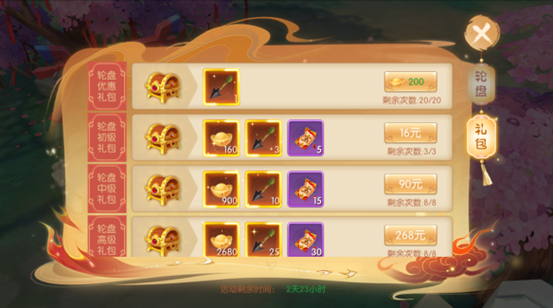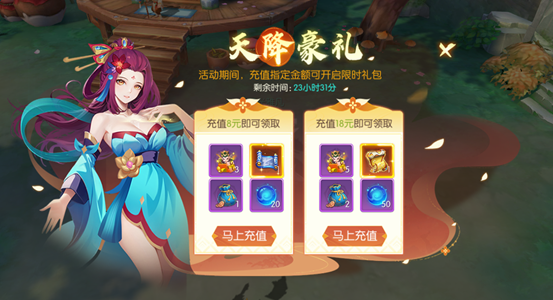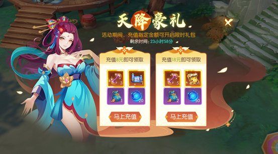 活动期间,充值指定金额可开启限时礼包。
