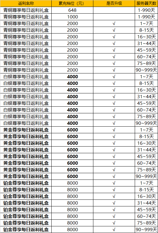 以下是本次升级的档位,返利内容公告将会于明日更新,还请及时留意。