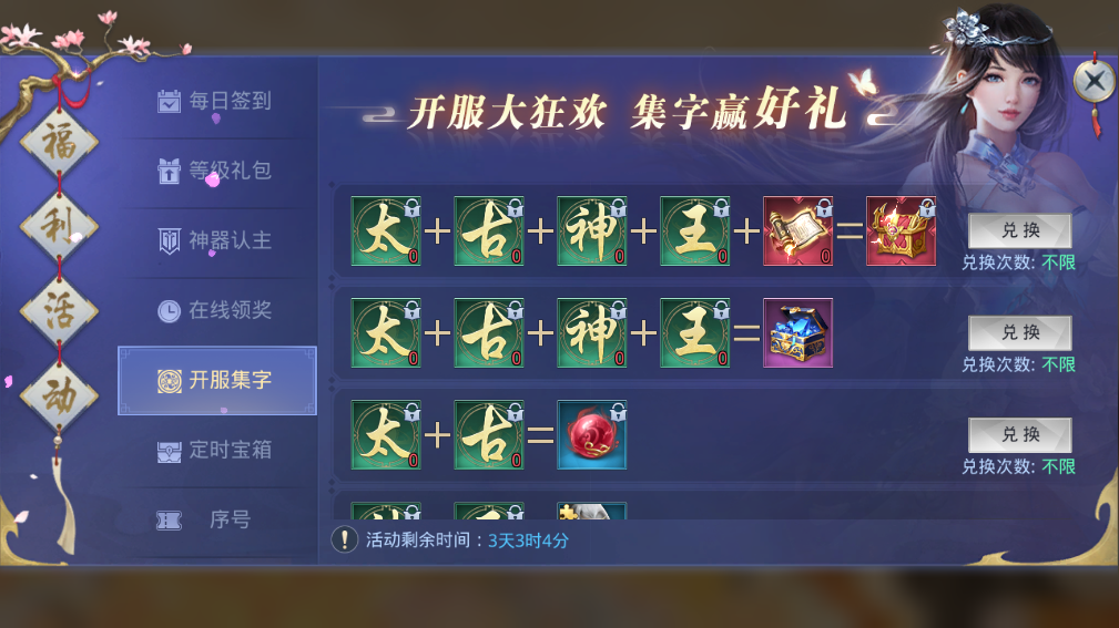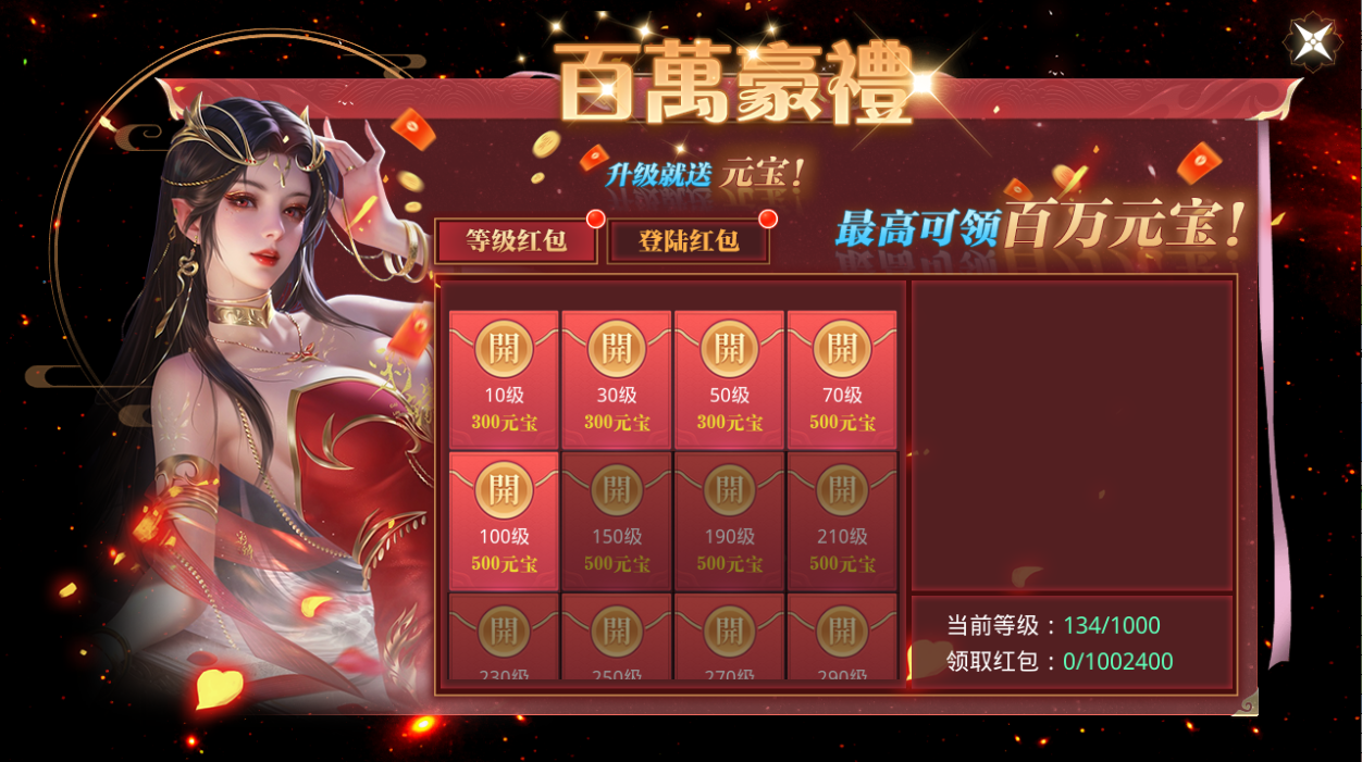 活动期间,累计充值达到对应档位即可领取相应奖励。