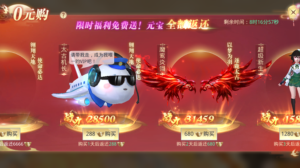 活动期间,在活动页面购买相应道具,元宝全额返还。