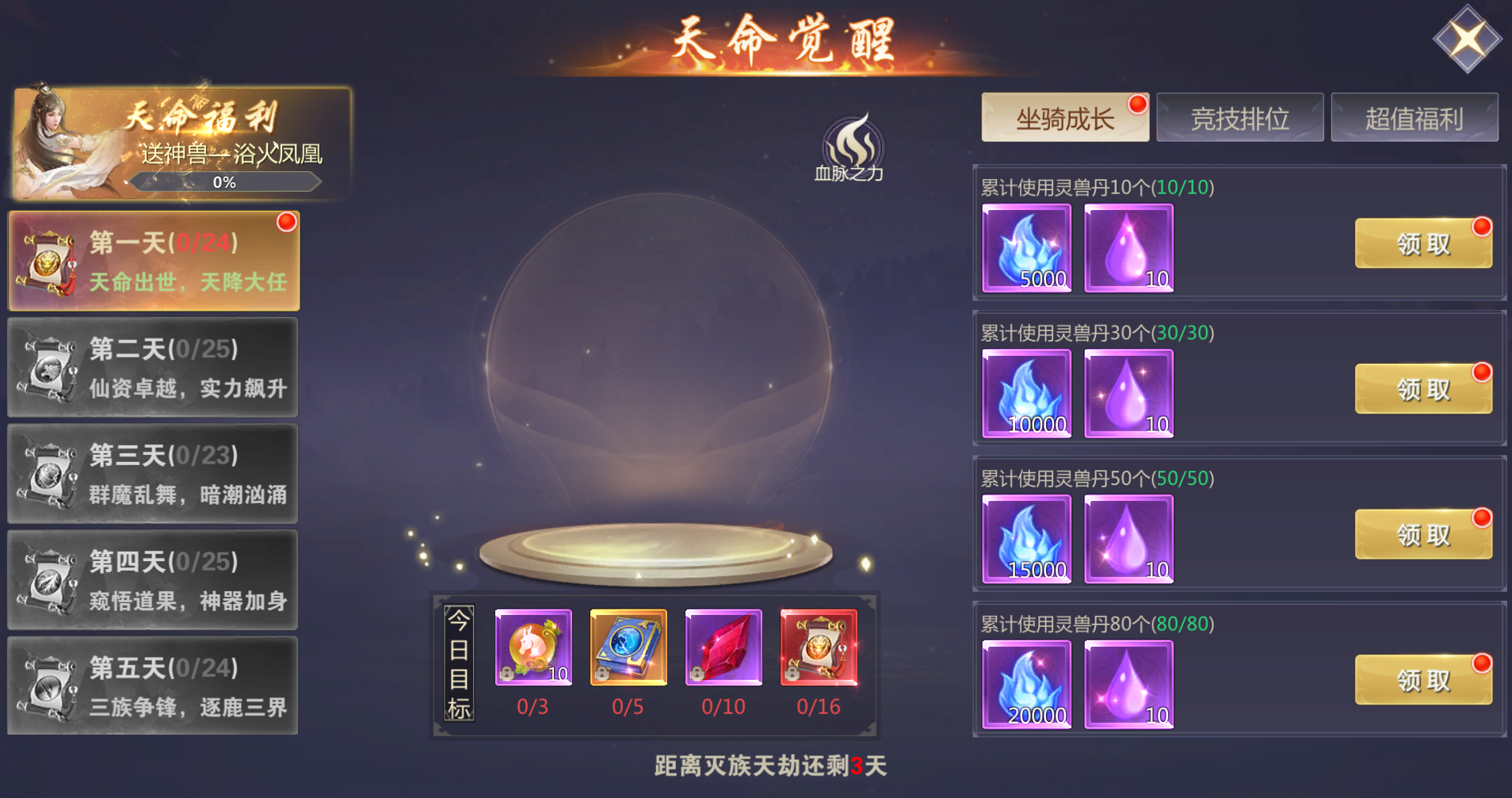 活动内容:开服活动期间内每天解锁任务,完成任务即可领取对应奖励,更有稀有神兽等你来拿!