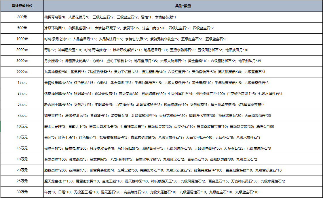 3、在以往累充活动已经领取过的礼包无法领取,可领取新达到档位的礼包;