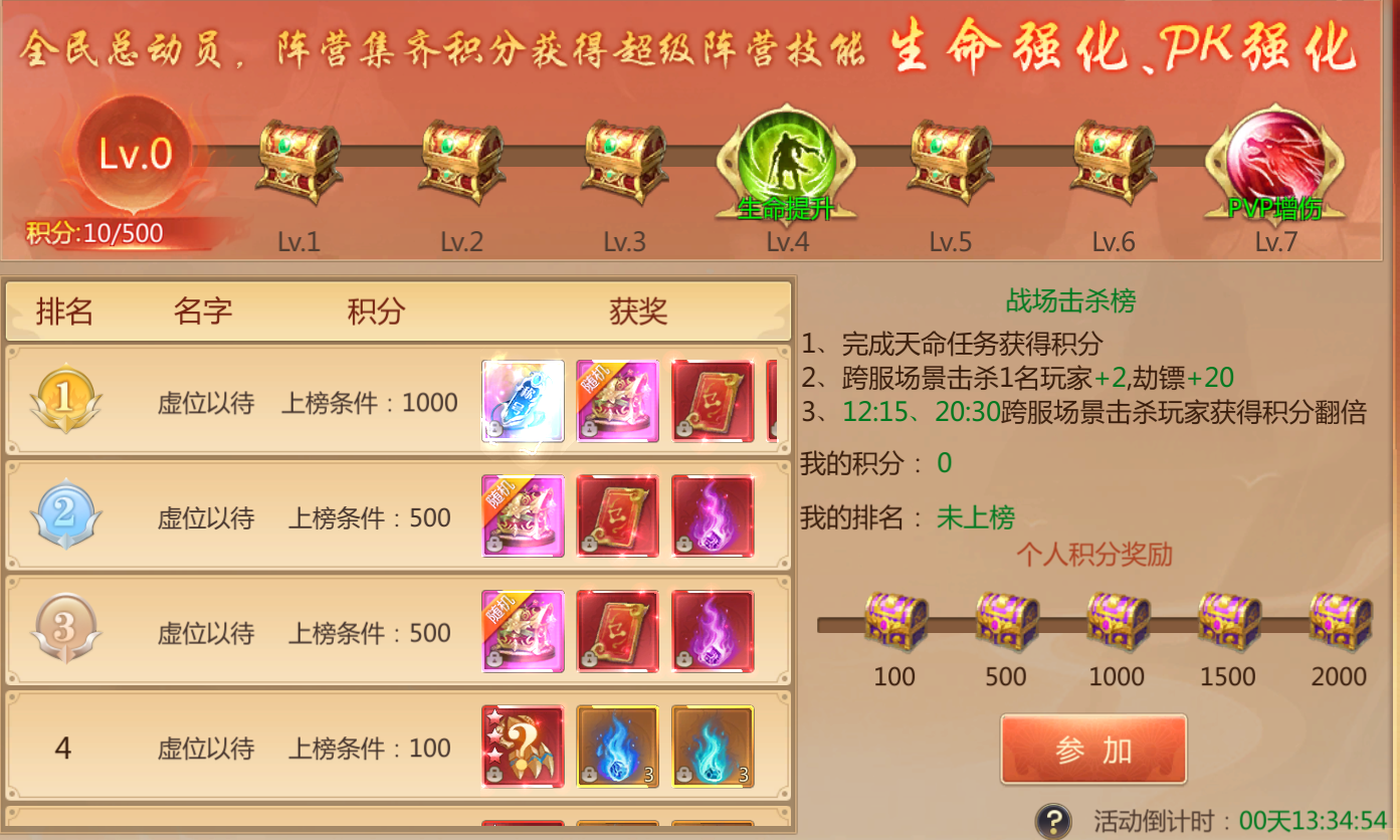 活动规则:活动期间完成天命任务即可获取积分,可解锁丰富奖励,同时也会按照积分进行排行,结算后可获取奖励。
