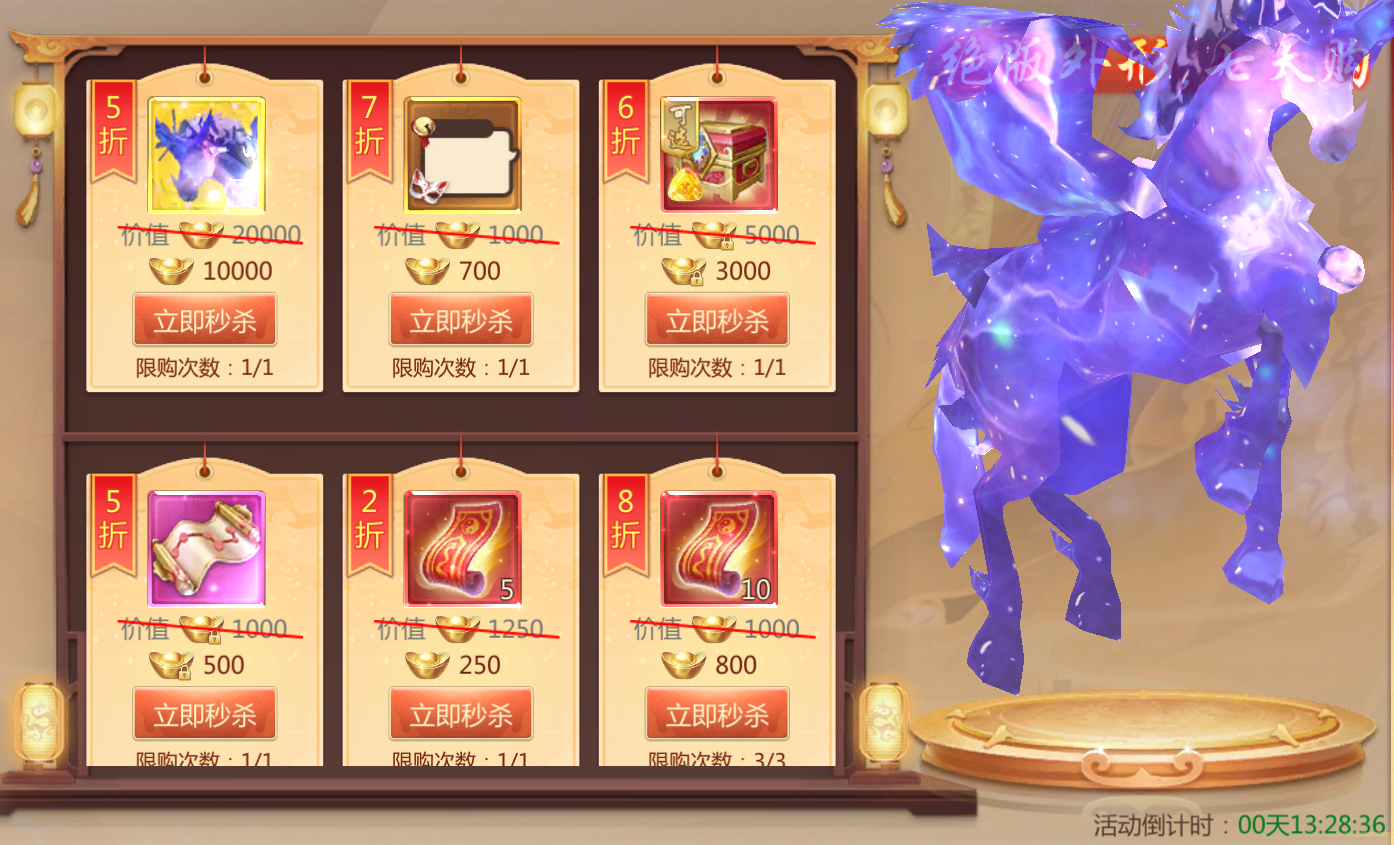 活动规则:活动期间可消耗元宝兑换折扣奖励。