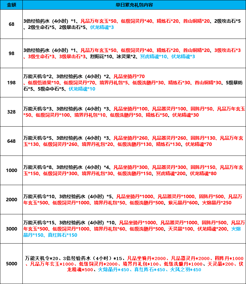 【活动规则】每个玩家充值达到对应的档位即可领取奖励(档位可叠加),每天每个档位最多仅能领取一次,隔日重置