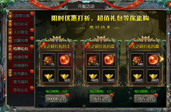 活动内容:在活动时间内,可以购买超值火之碎片礼包。