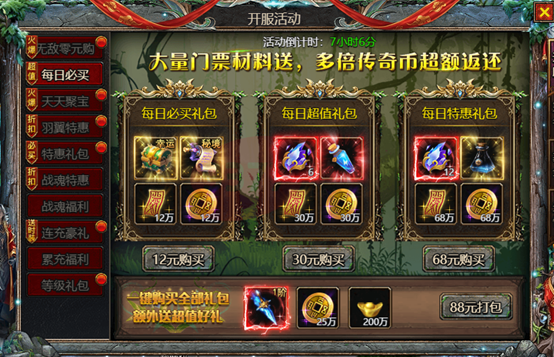 活动内容:在活动时间内,达到对应等级可以购买折扣礼包。