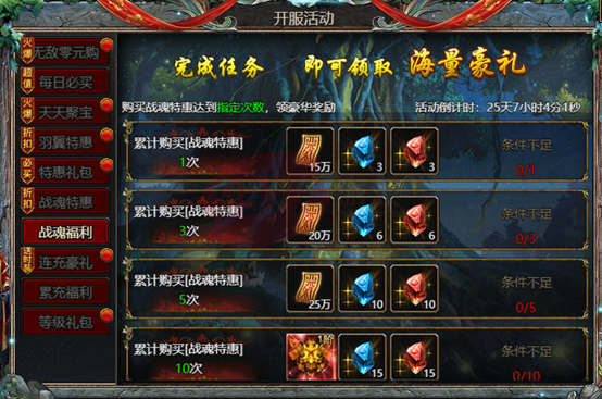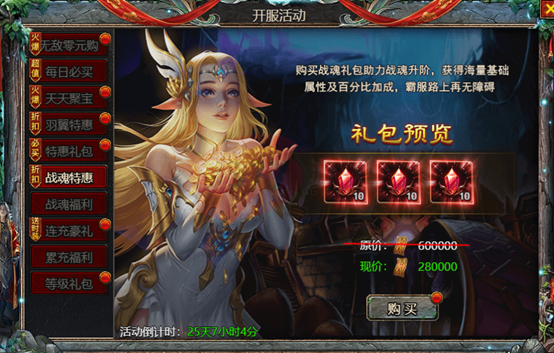 活动内容:在活动时间内,购买战魂特惠礼包达到指定次数,可领豪华奖励。