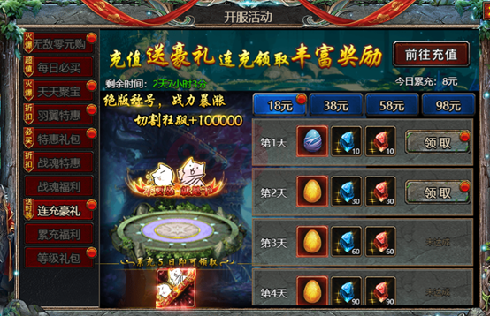 活动内容:在活动时间内,连续充值对应金额达到指定天数,可领取丰富奖励。