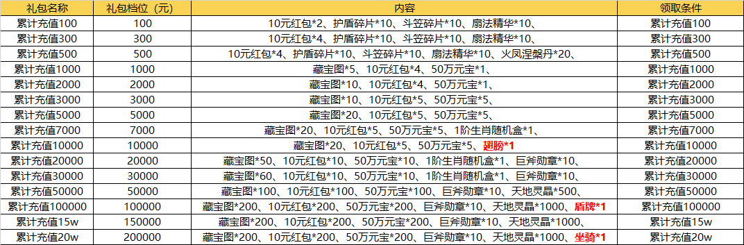 2.单角色充值达标每档仅可领取一次,不可转至其他角色;
