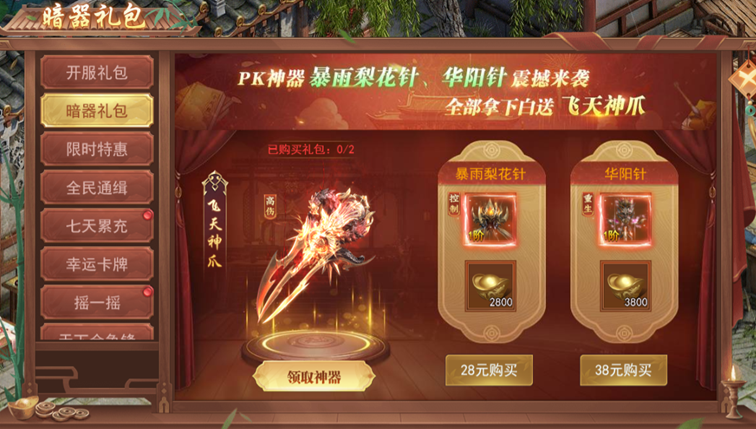 PK神器暴雨梨花针-点穴麻痹、华阳针-起死回生 震撼来袭,全部拿下白送飞天神爪。
